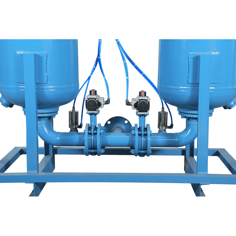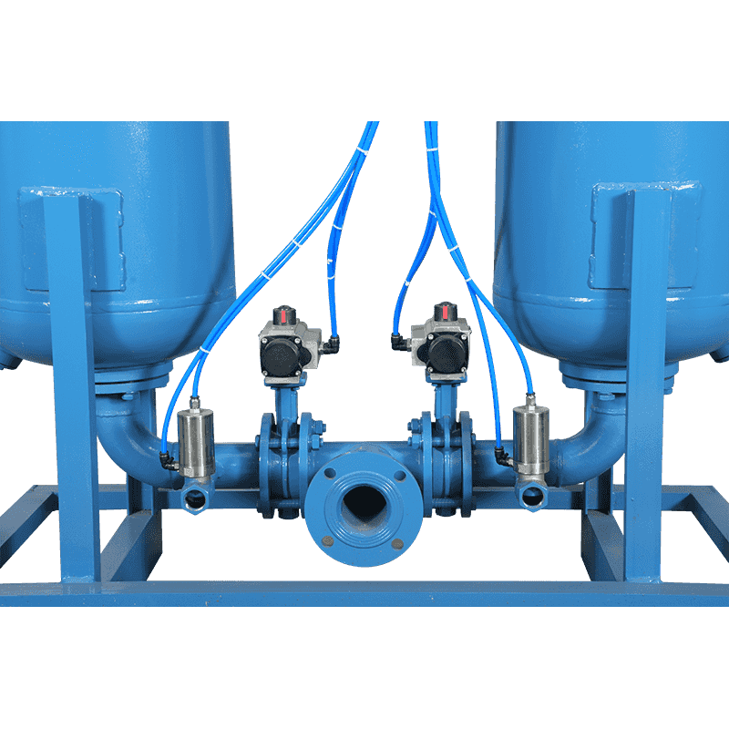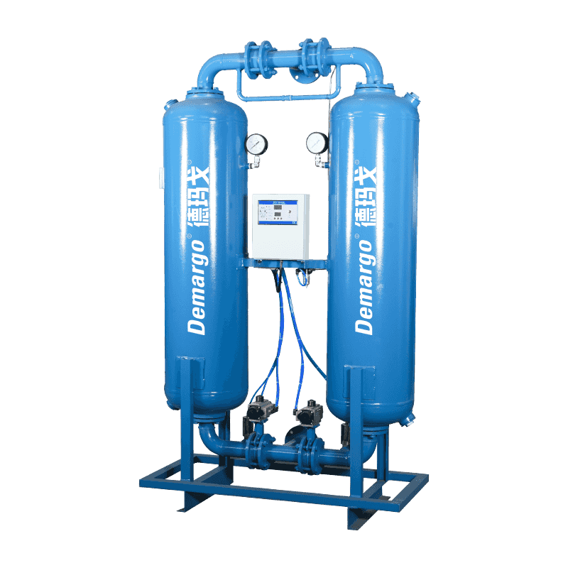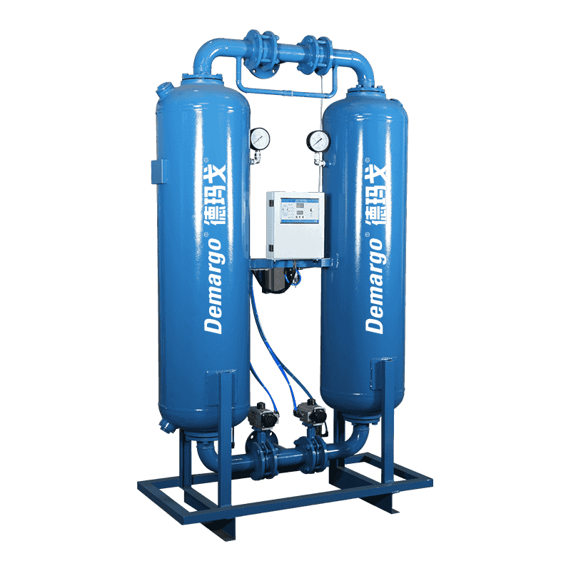 Uscătorul de adsorbție regenerativă fără căldură folosește „adsorbția de balansare a presiunii” pentru a obține efectul de uscare. Deoarece capacitatea aerului de a ține vaporii de apă este invers proporțională cu presiunea, o porțiune a aerului după uscare (numită gaz de regenerare) este decomprimată și extinsă la presiunea atmosferică. Această schimbare de presiune face ca aerul extins să fie mai uscat, iar apoi este permis să curgă prin stratul desicant care nu este conectat la fluxul de aer (adică turnul de uscare care a absorbit suficient vapori de apă). Gazul de regenerare uscată absoarbe umiditatea în desicant și îl scoate din uscător pentru a atinge scopul dezumidificării.